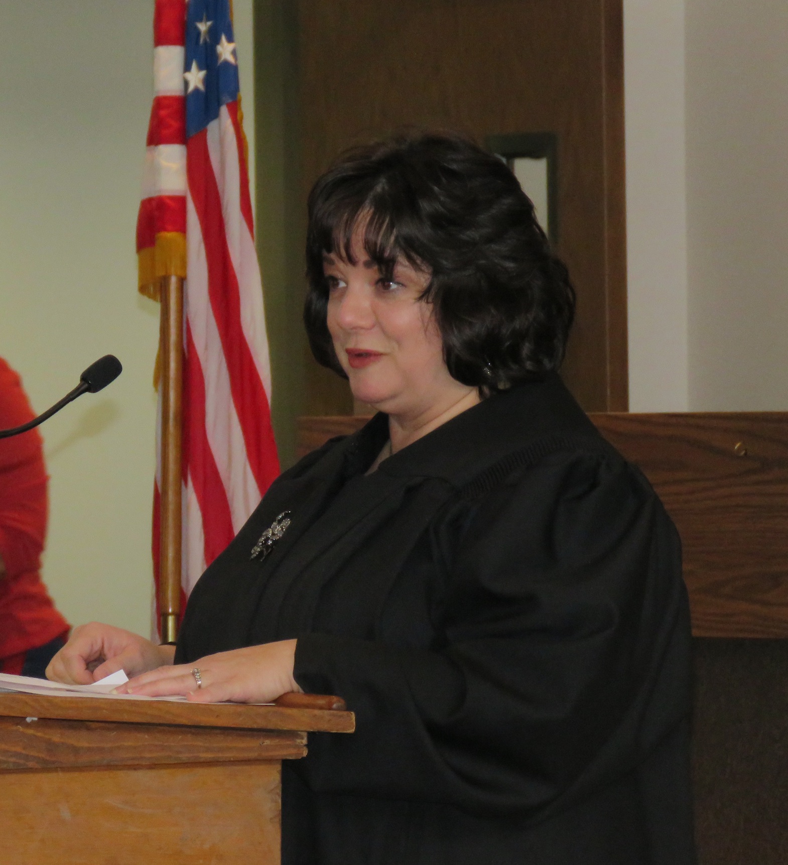 Angela Stamm-Philipps offers remarks after being sworn in.