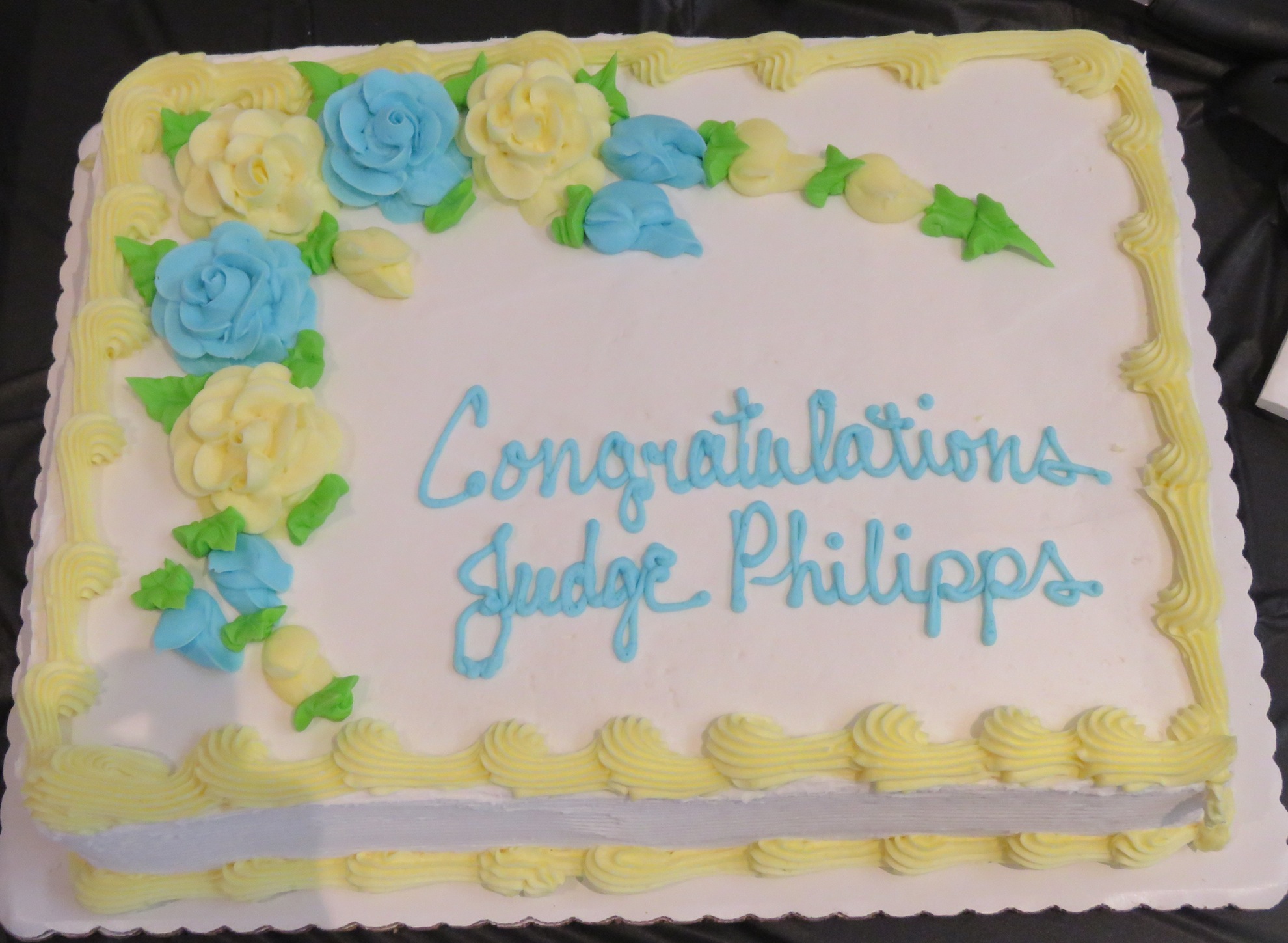 A celebratory cake congratulating Stamm-Philipps on her swearing-in.