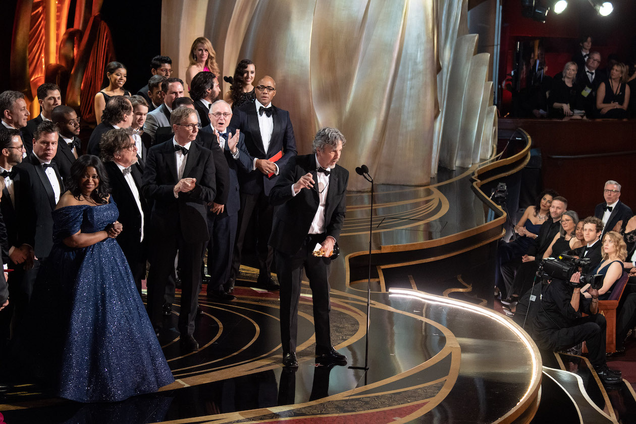 Peter Farrelly along with the cast and crew of "Green Book," accept the Oscar for Best Motion Picture for work on "Green Book" during the live ABC Telecast of the 91st Oscars at the Dolby Theatre in Hollywood on Sunday. (Photo by Terekah Najuwan/©A.M.P.A.S.)