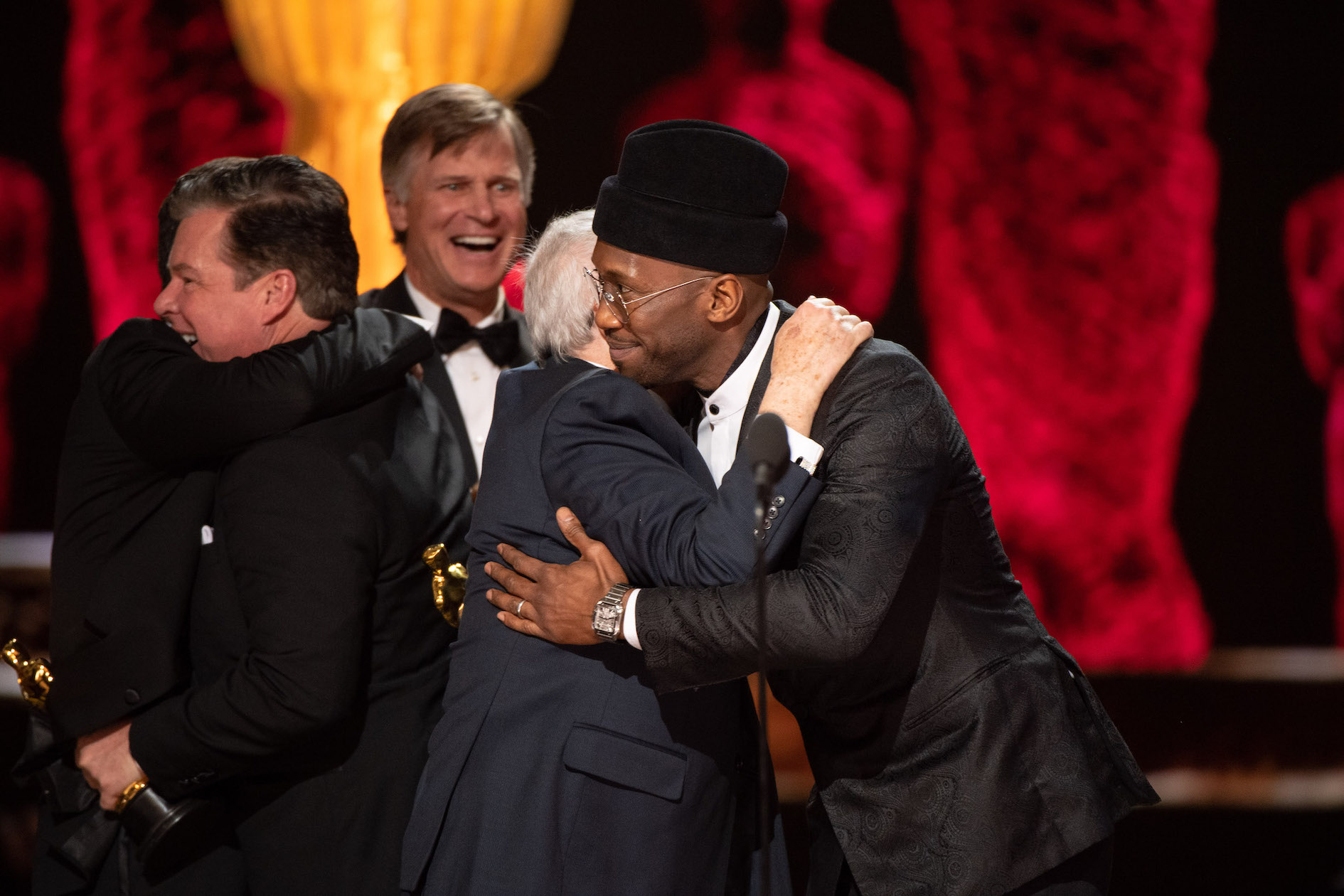 Mahershala Ali on stage as Jim Burke, Peter Farrelly, Charles B. Wessler, and Nick Vallelonga, along with the cast and crew of "Green Book," accept the Oscar for Best Motion Picture for work on "Green Book" during the live ABC Telecast of the 91st Oscars at the Dolby Theatre in Hollywood Sunday. (Photo by Aaron Poole/©A.M.P.A.S.)
