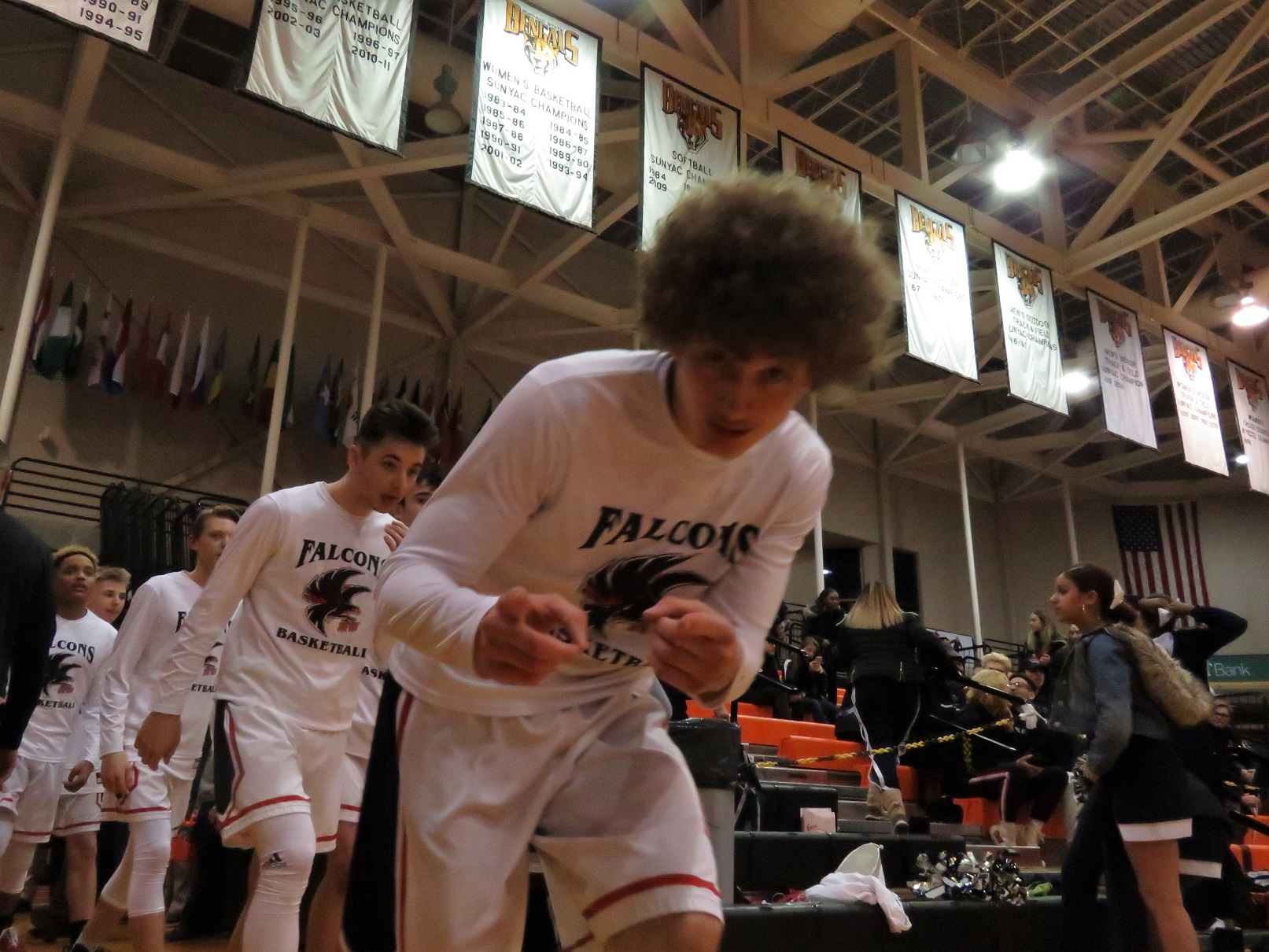 The Falcons were down 8-3 early, but gained a boost off the bench as senior Roman Wright came in and scored five straight points to tie it at 8.