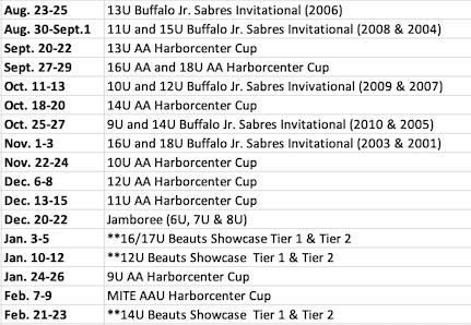 The popular Harborcenter Cup AA tournament series will return for a fifth season. AA teams at all levels are invited to apply online at www.HARBORCENTER.com/tournaments. The Buffalo Beauts are proud to announce the return of the Buffalo Beauts Showcase series for girls hockey teams in the 12U, 14U and 16U/17U categories. All girls teams are invited to apply using the same link.