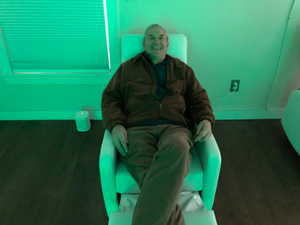 Town of Lewiston Councilman Bill Geiben relaxes in the salt room.