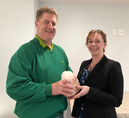 Of course, the highlight is the middle room’s halo generator, which, Krouse recently told NFP, “crushes salt down into little, teeny, tiny molecules – molecules that you can inhale – and it’s really good for your respiratory system. It’s really good for your skin. And it just overall can help with a lot of different things.”