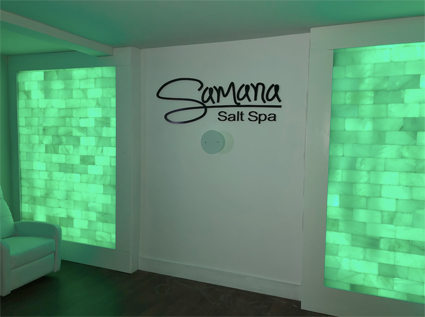 Samana’s brochure states salt therapy can benefit individuals with allergies/hay fever; asthma; chronic bronchitis; COPD; cough, cold and flu; cystic fibrosis; ear infections; emphysema; psoriasis, eczema and acne; sinus infection/sinusitis; snoring and sleeping problems; and stress, anxiety and fatigue.