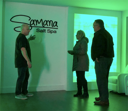 Fittante shows off the salt room to Chamber of Commerce members Kris Trunzo and Fred Blue.