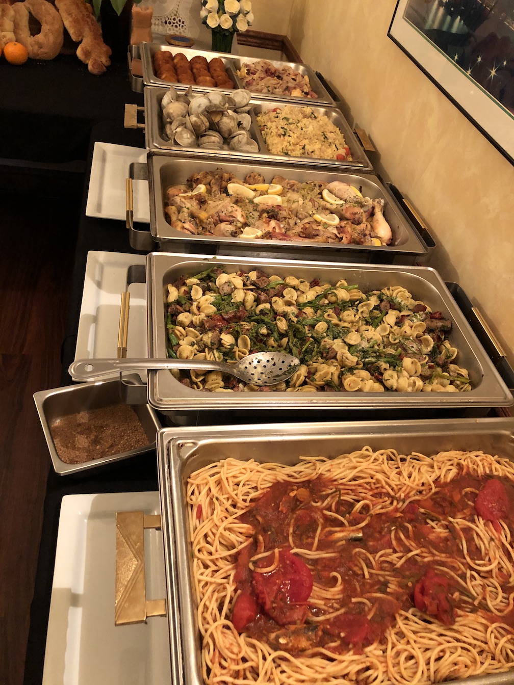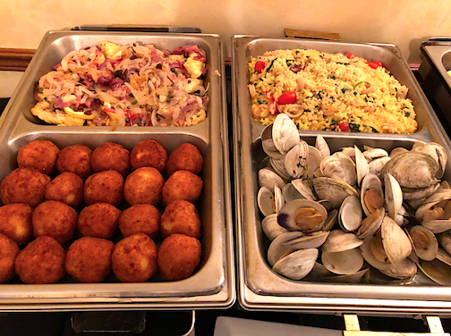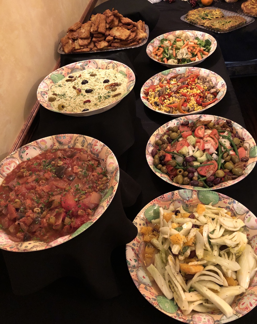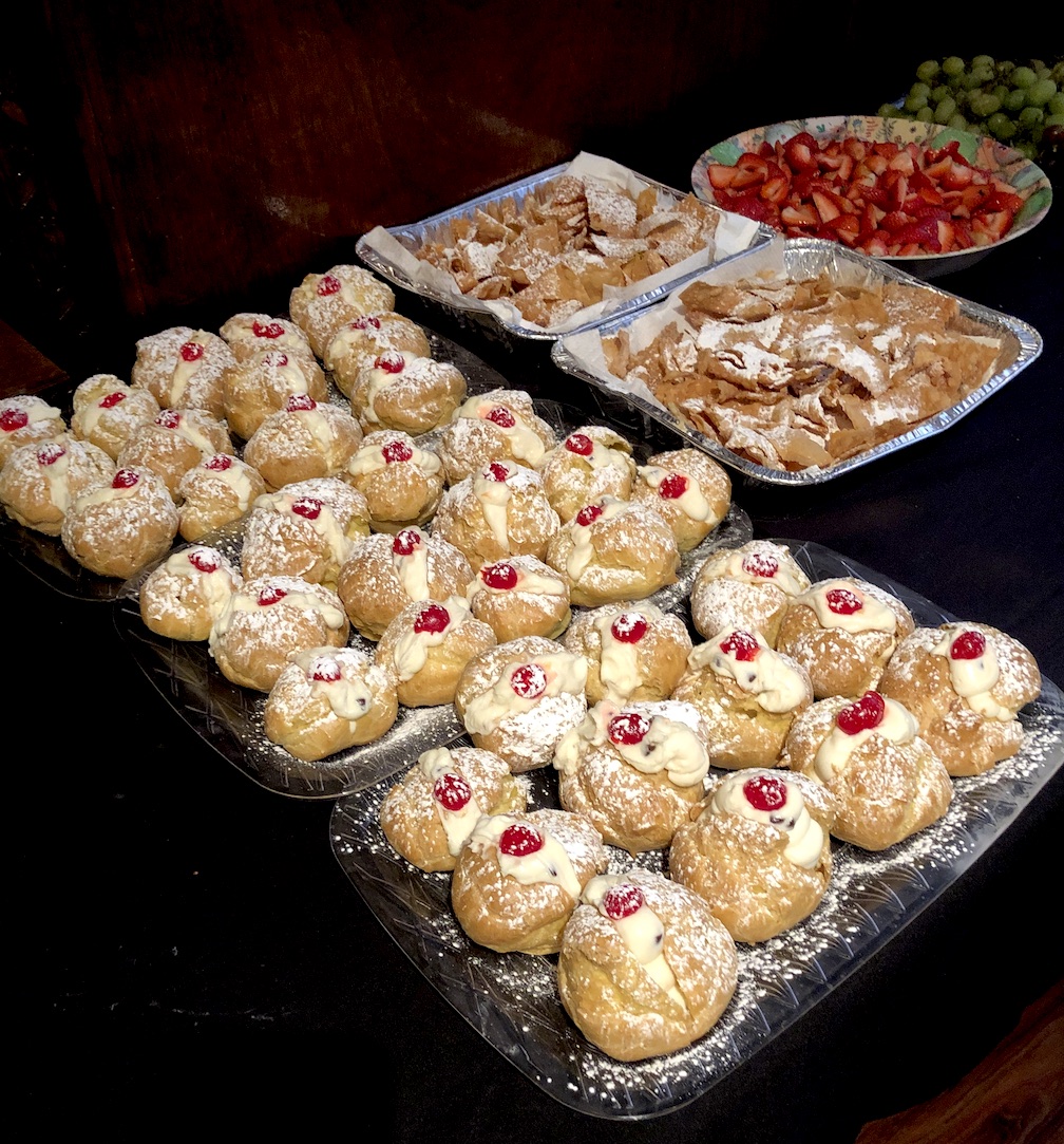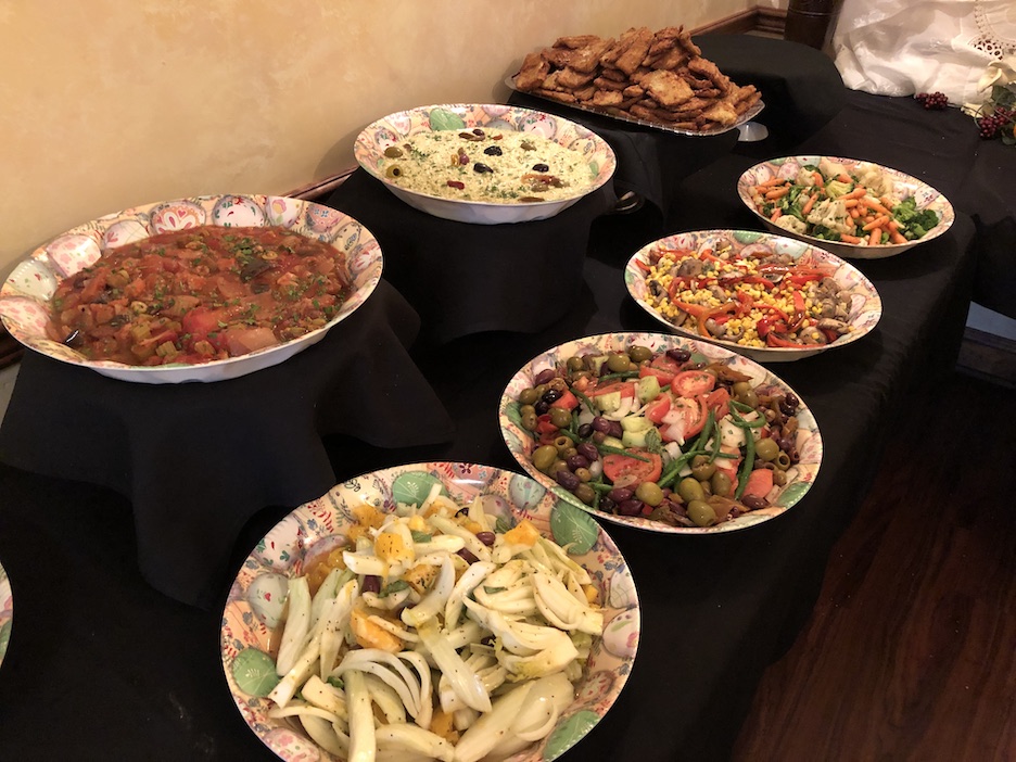 The Soldano and Bellanca families offered a large assortment of dishes, including baccalà, risotto with calamari, spaghetti with tomato, vegetable frittatas, and shells with broccoli rabe, as well as assorted veggies, pizza breads and Arborio rice balls. Guests also enjoyed a variety of desserts, including cannoli, fruit and pastry crème puffs.