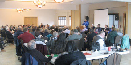 Following the break, the third speaker, Dr. Richard Hill, discussed the Fort Niagara Peace Conference of 1764 and the role of the Haudenosaunee people in the War of 1812. Hill is a Tuscarora of the Beaver Clan, residing at Six Nations of the Grand River Territory. Hill formerly taught at SUNY Buffalo in American studies for 20 years. He also served as assistant director of public programs at the National Museum of the American Indian, Smithsonian Institution.