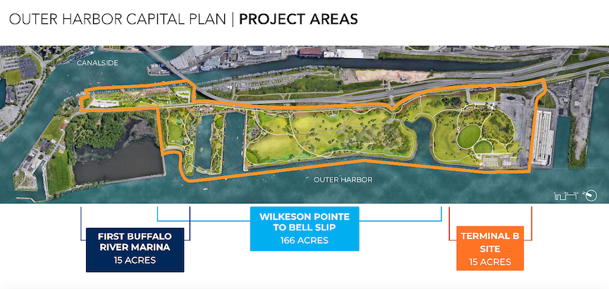 Erie Canal Harbor Development Corp. on Thursday held its third and final Buffalo Outer Harbor access and activation project open house where the preferred vision for the Outer Harbor was presented to the public. The plan emphasizes passive recreation in three unique waterfront zones: First Buffalo River Marina; the 166 acres that include Wilkeson Pointe to Bell Slip; and Terminal B. The overall goals of the project include improving use and enjoyment of the Outer Harbor, enhancing bicycle and pedestrian access and minimizing adverse impacts on communities and the environment.