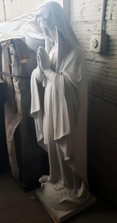 Stone Art Memorial Company in Lackawanna is refurbishing this statue of Mary for St. Peter R.C. Church.