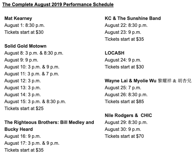 Fallsview Casino continues to bring summer excitement this August with award-winning performances by R&B legend Nile Rodgers & CHIC, country duo LOCASH, the vibrant production of “Solid Gold Motown,” and disco superstars KC & The Sunshine Band.