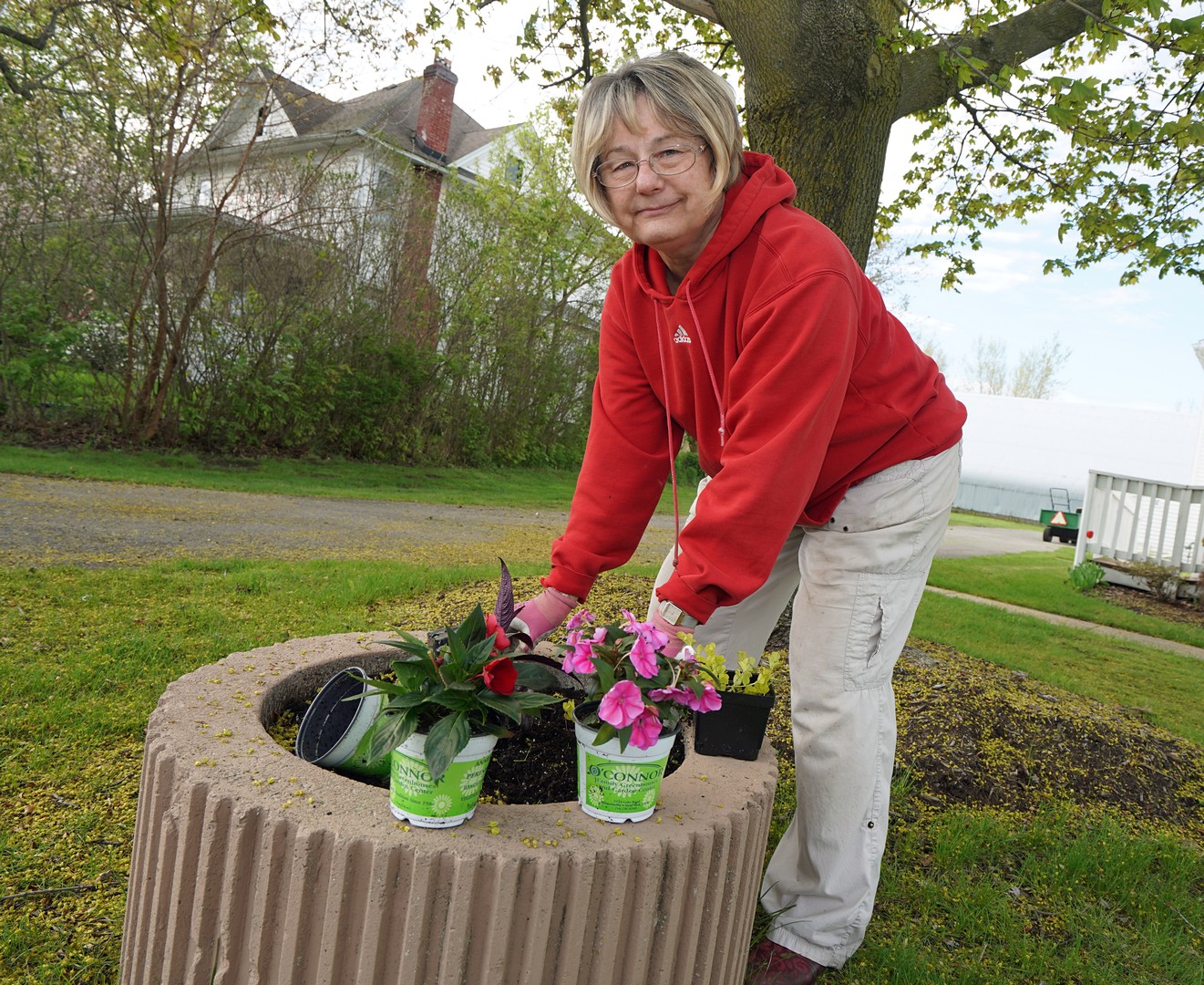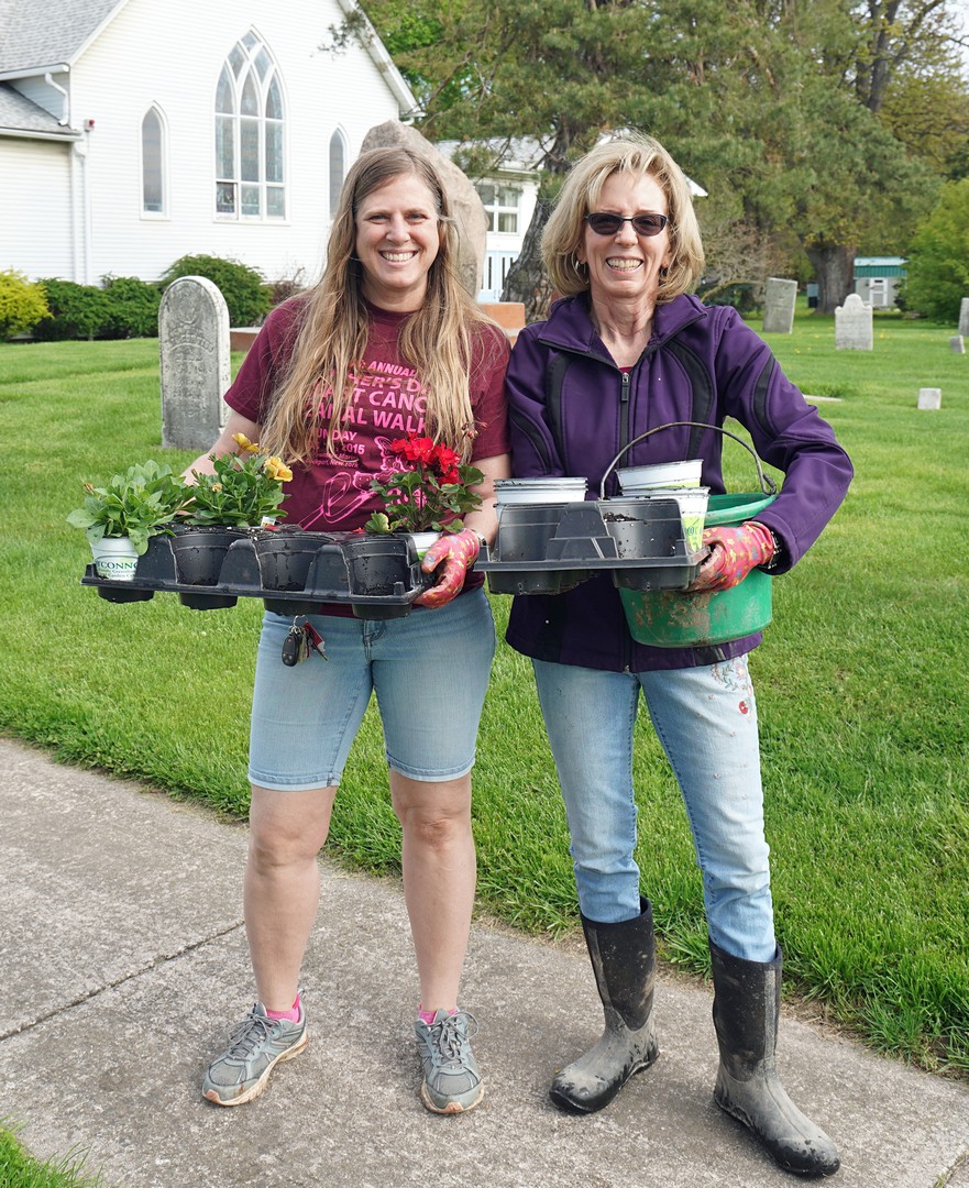 Ransomville Garden Club members marked the club’s 50th anniversary last Saturday with its annual planting of spring flowers. The event took place on the “four corners” in the hamlet where club members formally dedicated four new concrete planters that were installed last summer.