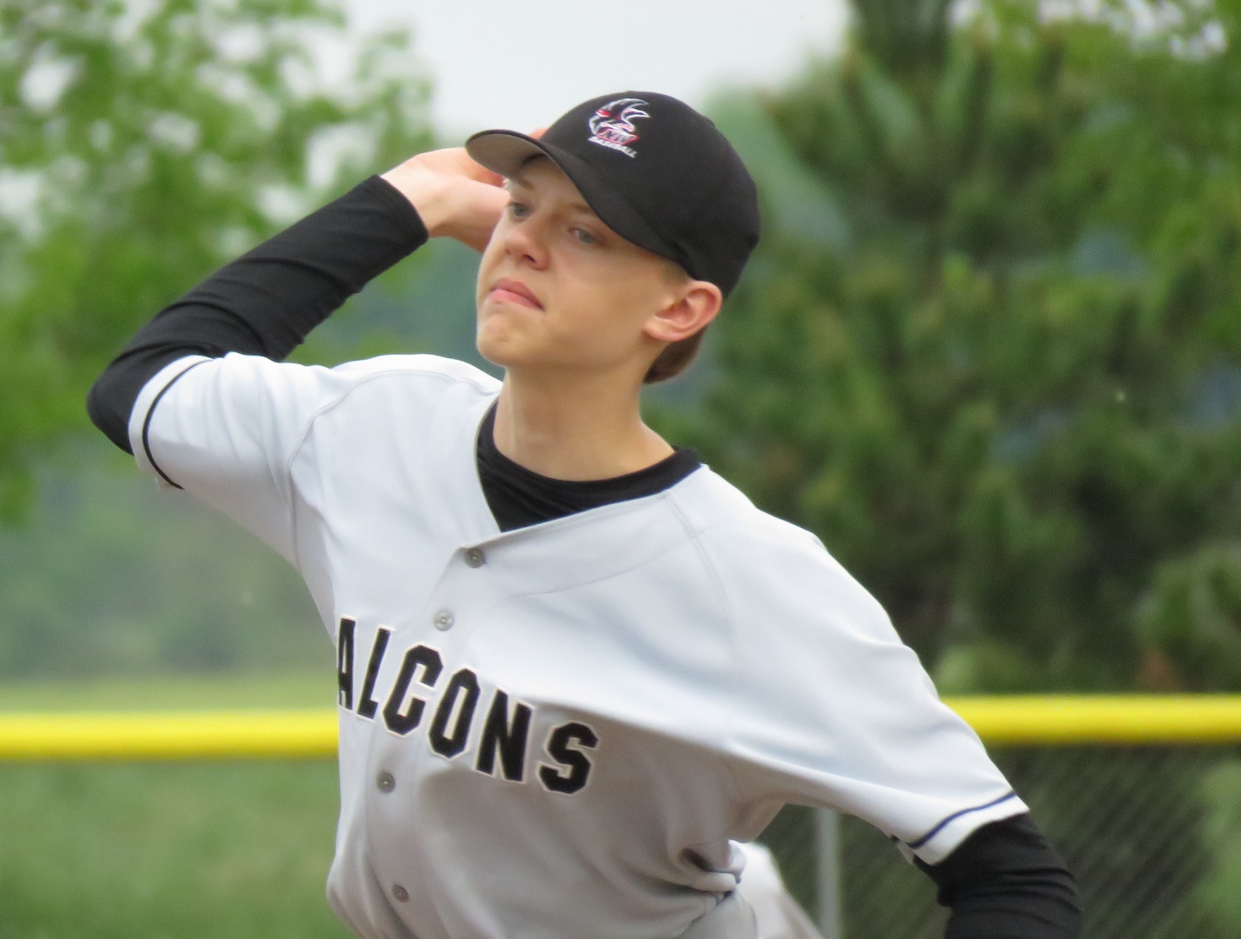 Falcons Junior pitcher Ryan Mellerski throws a pitch during his five innings of work versus North Tonawanda.