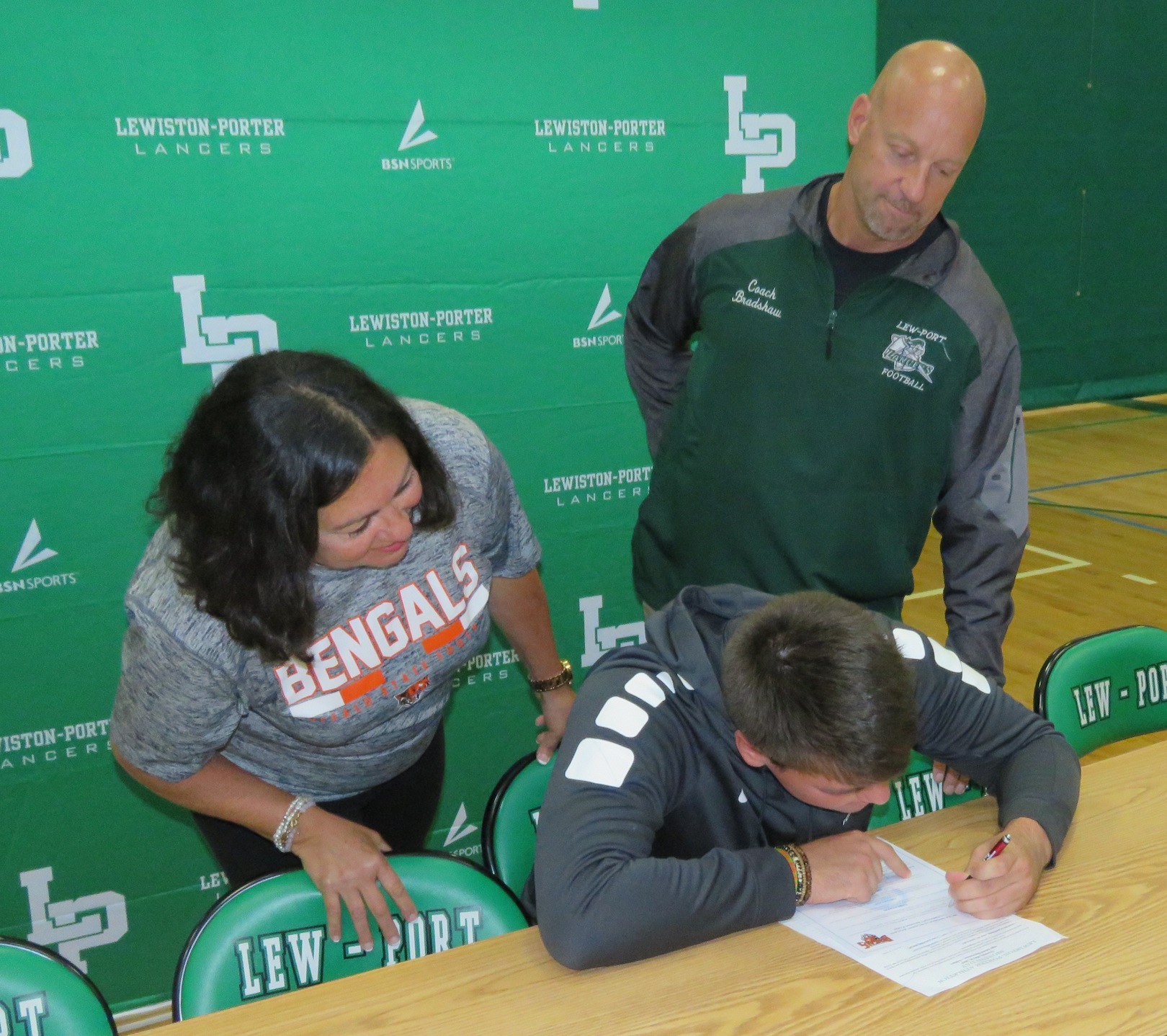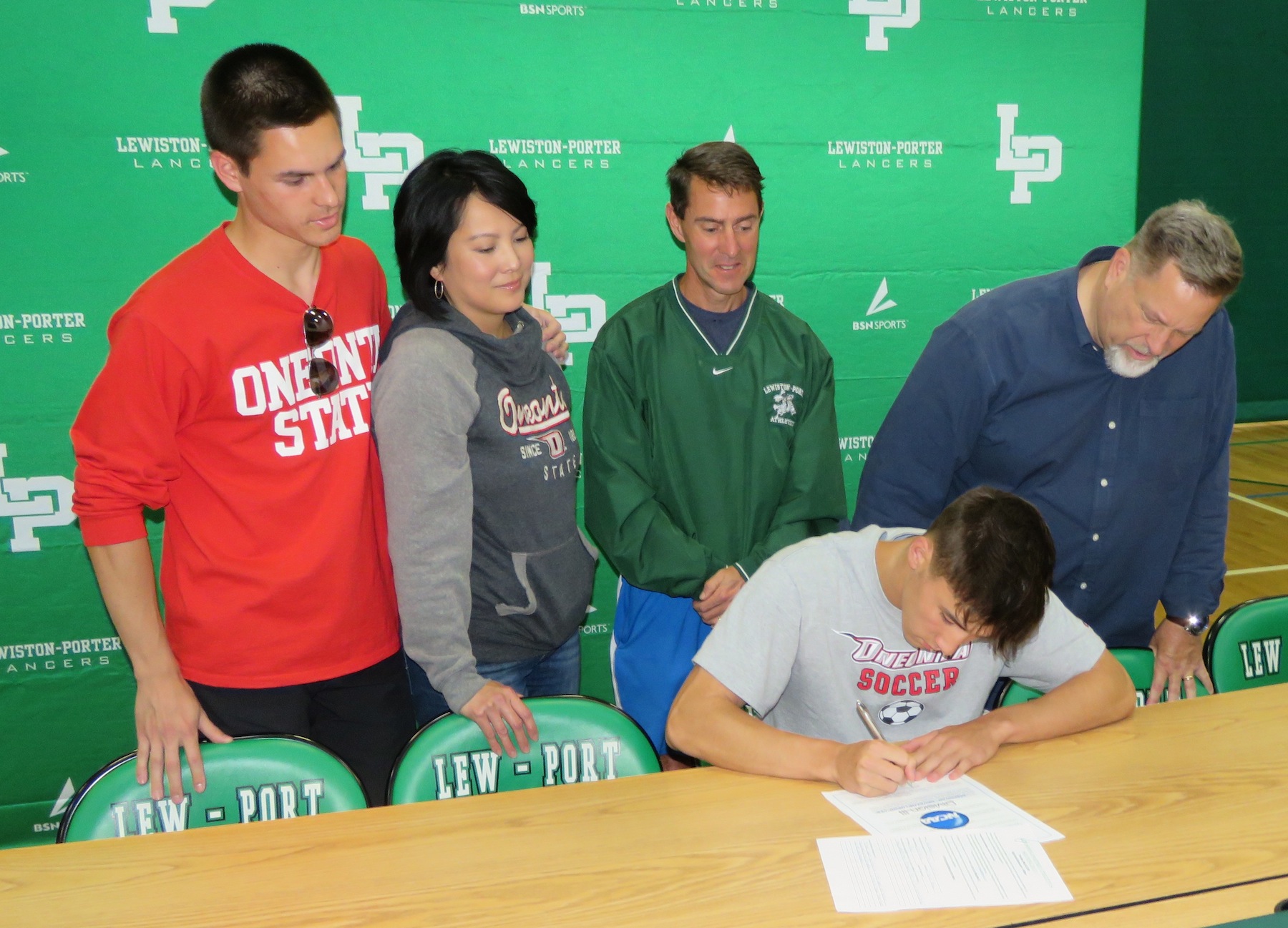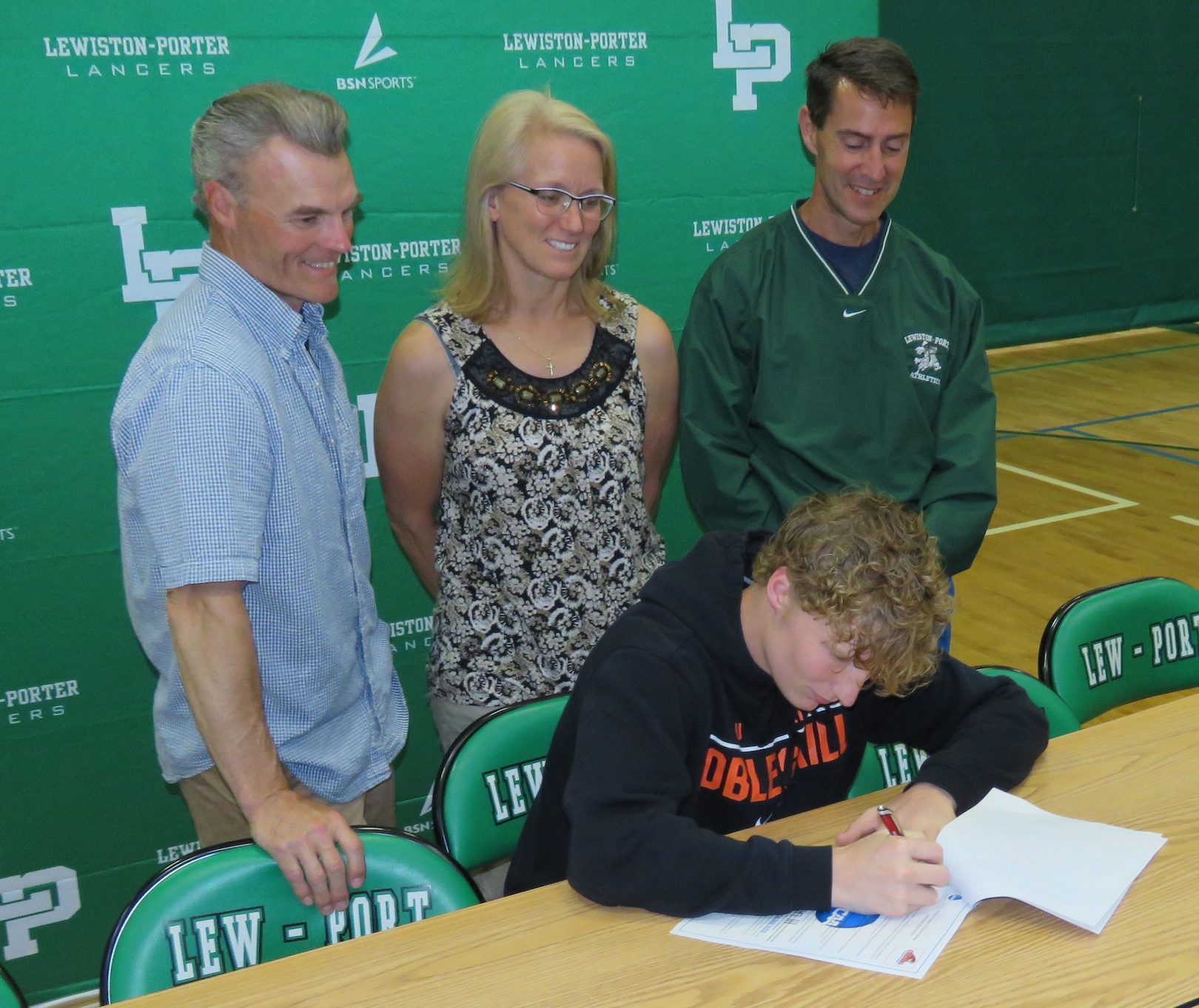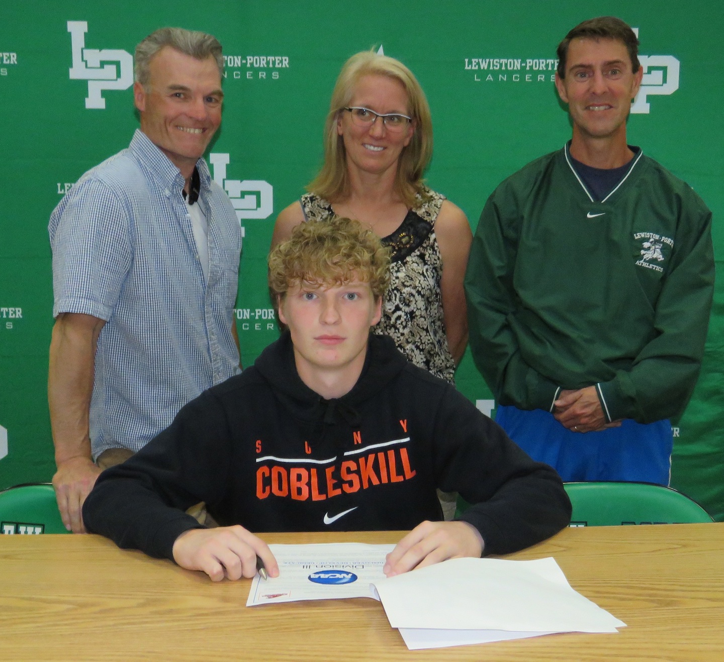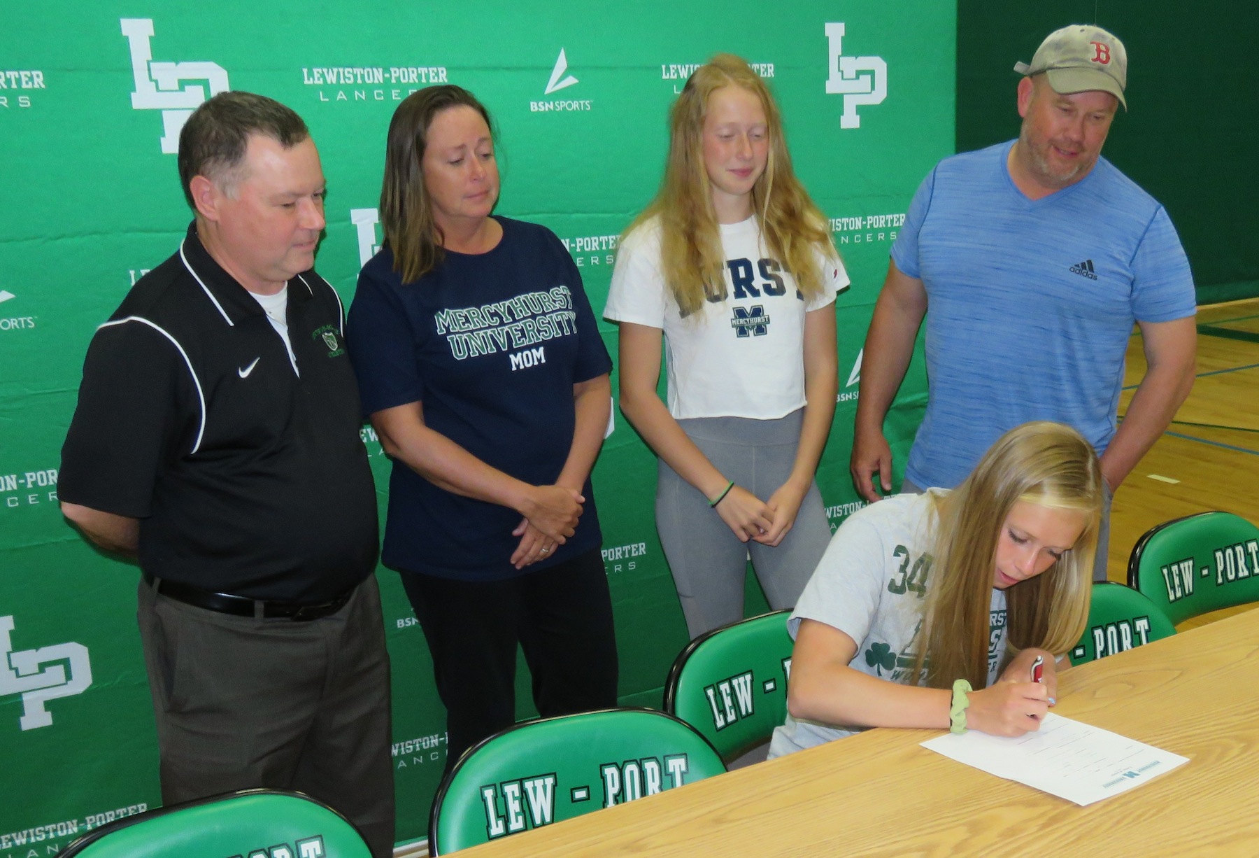 The signees, joined by family, friends and coaches, gathered in the gymnasium at Lewiston-Porter High School to pen their names and take another step towards continuing their student-athlete careers.