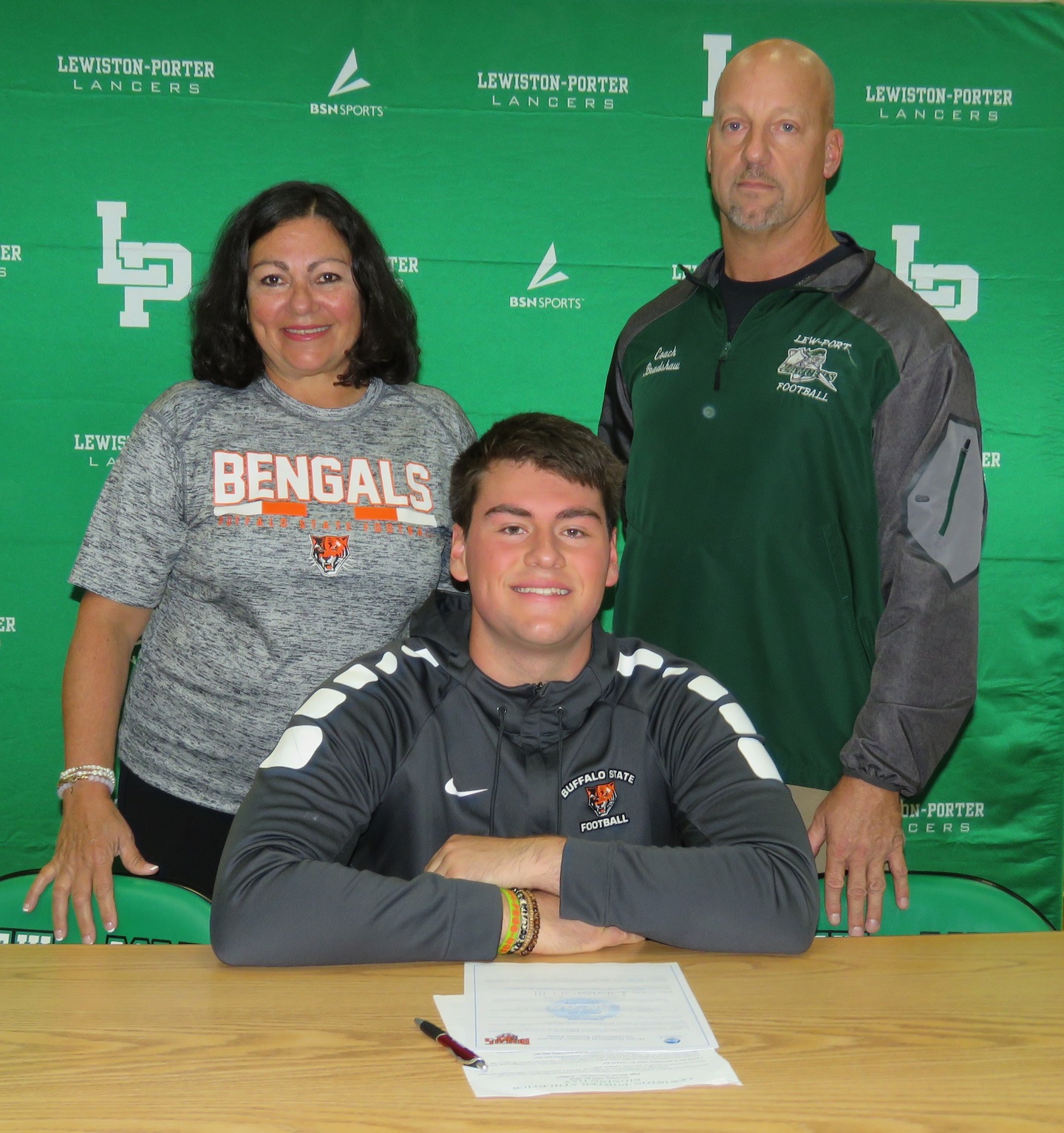 Lancers boys basketball and football coach Matt Bradshaw hosted the event and said the seven athletes who signed left a “legacy of winning” at Lew-Port. This season alone, the Lancers won four Niagara Frontier League titles and four Section VI titles.