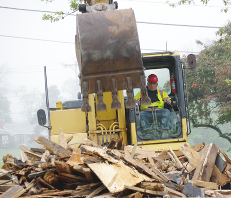 Pictured, George Panepinto of Pinto Construction made quick work of the structure, which will be replaced by a newer gazebo in the fall.