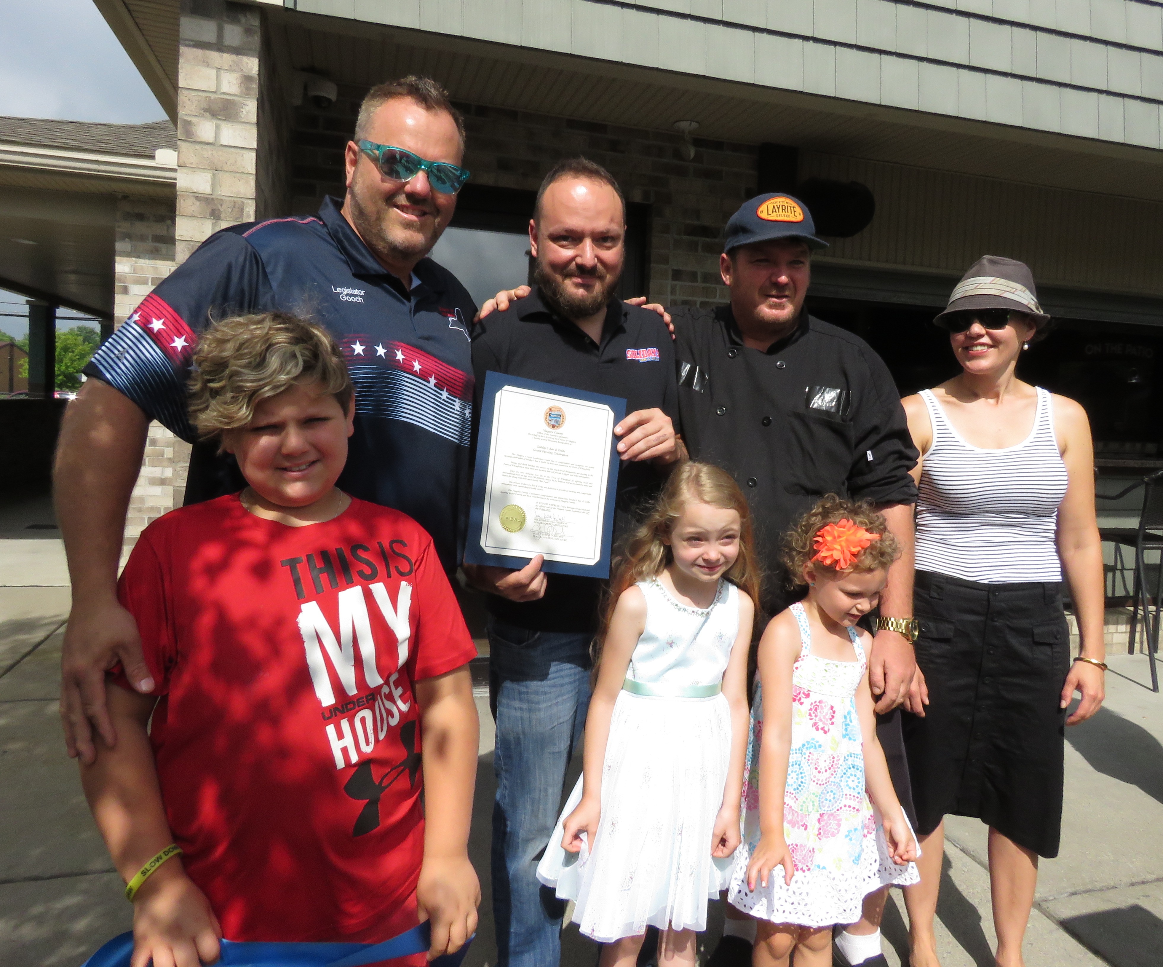 Owner Denny Soliday holds the proclamation given by Niagara County Legislator Jesse Gooch.
