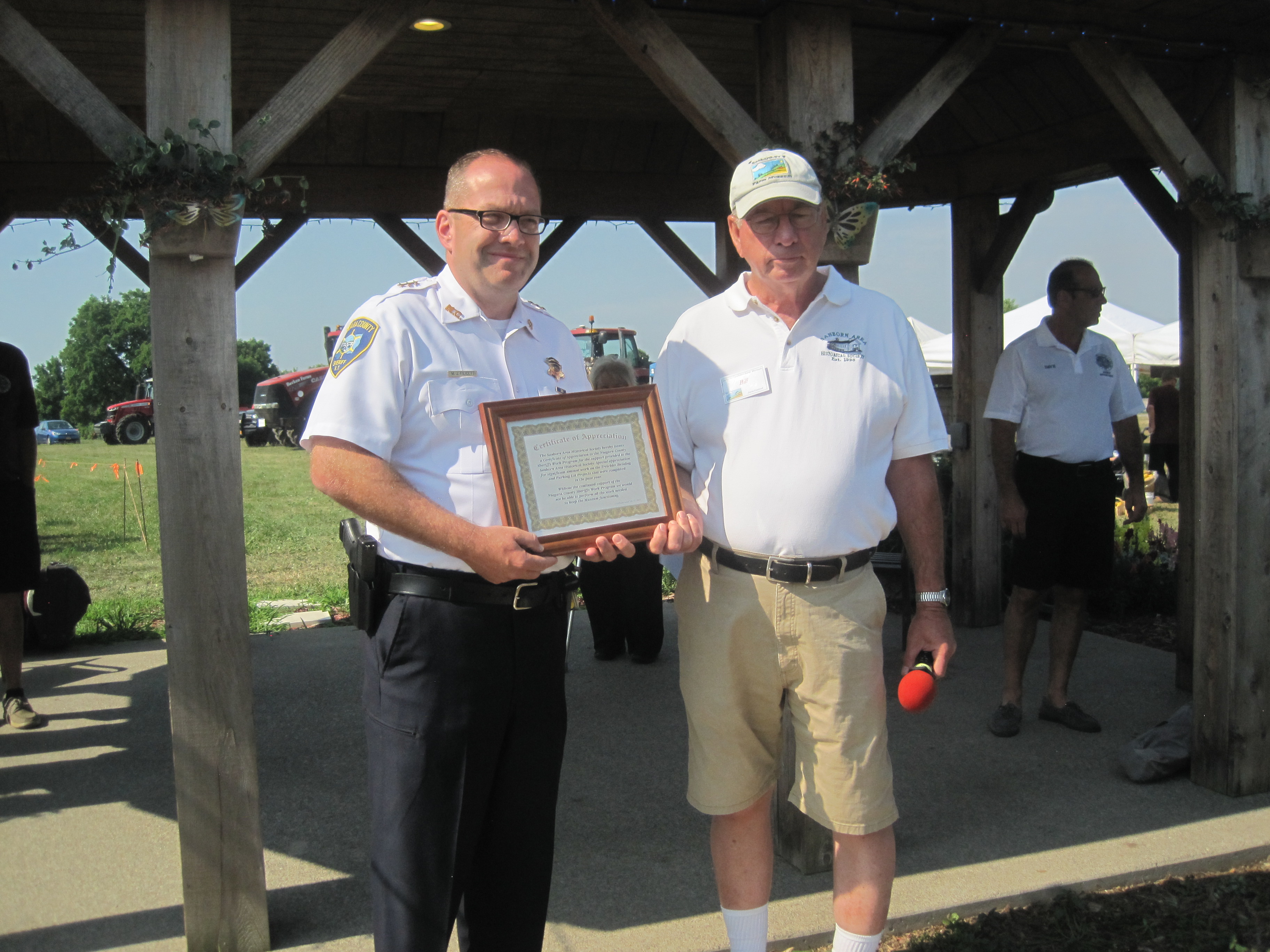 Next, the Niagara County Sheriffs Office was given a citation from the Sanborn Area Historical Society at the Sanborn-Lewiston Farm Museum Festival for providing the Sheriff’s Work Program to the society numerous times over the past years. Pictured, below, from left, Niagara County Undersheriff Mike Filicetti and Read.