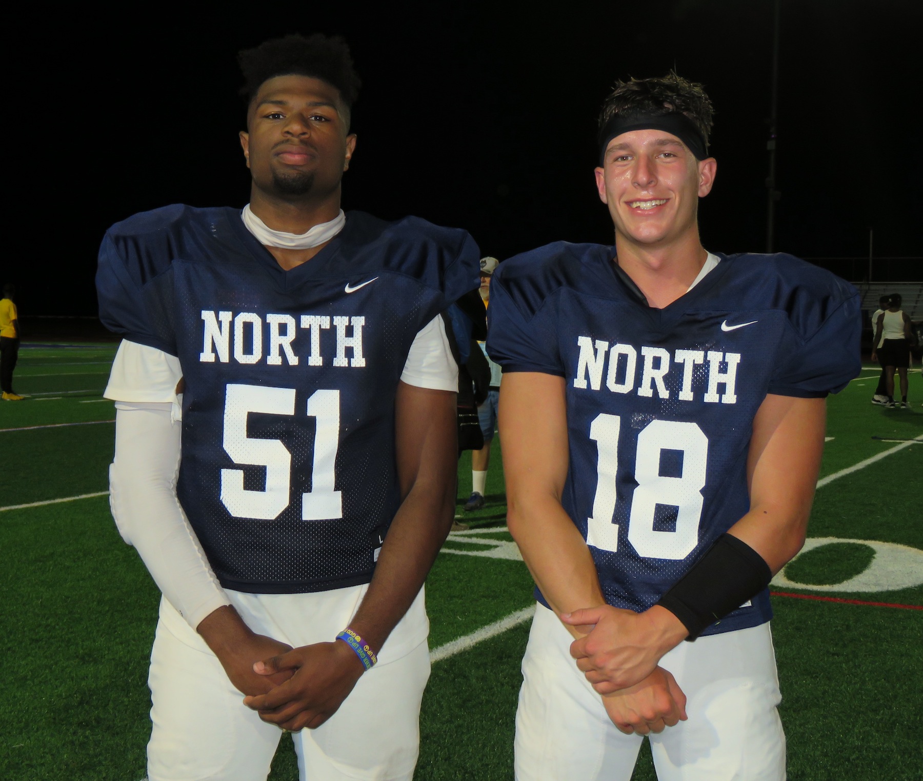 Other than two tough interceptions, Sionko made the most of the night with two touchdown passes and unofficially over 200 yards passing. The Vikings alum gave it his best shot for North offensive MVP, but the award went to Kenmore West’s Joe Stewart, who had a stellar outing at wide receiver.