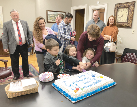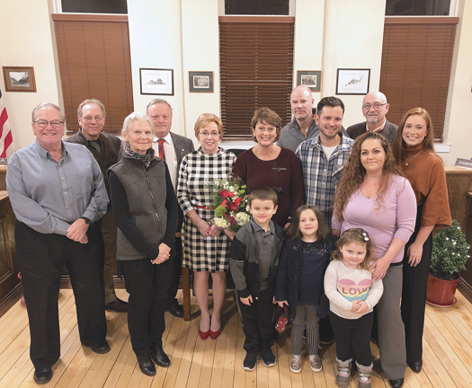 The Village of Lewiston celebrated retiring Clerk/Treasurer Amy Salada’s last board meeting Monday with a slideshow, cake, congratulations and thanks. Her family was in attendance and presented Salada with flowers.