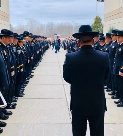 At Niagara County Sheriff James Voutour’s “walk-out” on Dec. 30, 2019 – his last day as a county law enforcement officer – he walked outside to find two long lines of sheriff’s deputies in formal dress uniforms wishing him well in the next phase of his life.