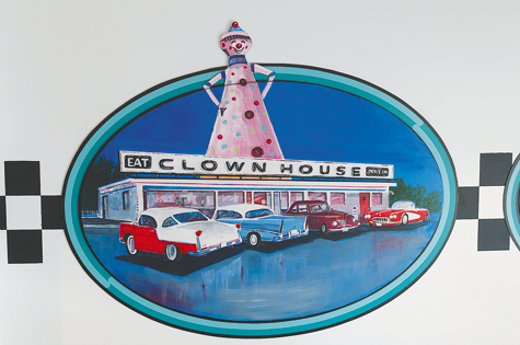 The decor inside harkens back to the building’s origins at The Clown House. The diner was originally a seasonal, walk-up snack shop with no inside seating
