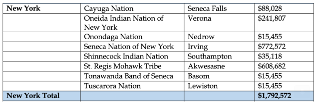 U.S. Department of Housing and Urban Development Secretary Ben Carson announced $200 million in Indian Housing Block Grants (IHBG) to American Indian Tribes and Tribally Designated Housing Entities (TDHEs) across the country to respond to COVID-19. Communities across New York will be receiving $1,792,572 in total. This funding will be used to help Tribes and TDHEs carry out affordable housing activities to protect the safety and health of their tribal members and communities.