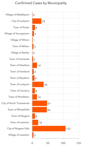 Erie County cases, meanwhile, are up to 2,738. Of that number, Grand Island has 40 and the City of Buffalo 1,095 confirmed cases.