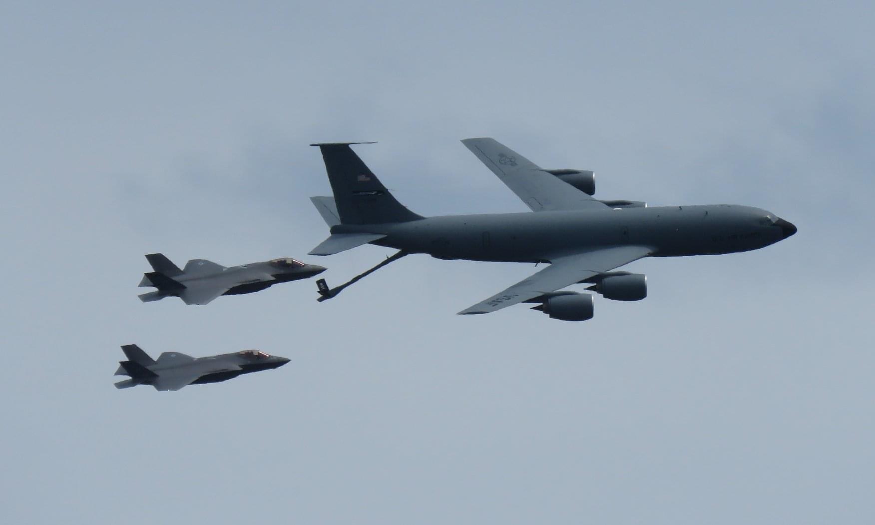 As part of a “Salute to WNY,” a 914th Air Refueling Wing KC-135 from the Niagara Falls Air Reserve Station and three F-35 fighter wings from the Vermont National Guard flew over parts of Western New York on Tuesday to salute frontline COVID-19 health care workers, essential employees and emergency responders. The planes were slated to fly over almost a dozen-and-a-half locations throughout the late morning.