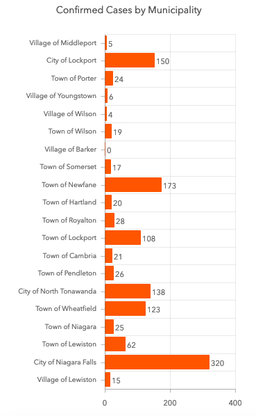 Niagara County Public Health Director Daniel J. Stapleton said, “It’s important for the community to know that more than half of these cases since Thursday morning are tied to senior living facilities in Niagara County. The state requires weekly testing of all staff of senior living facilities across New York state to find positive cases and contain the spread.”
