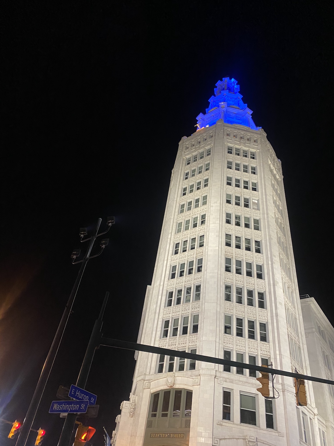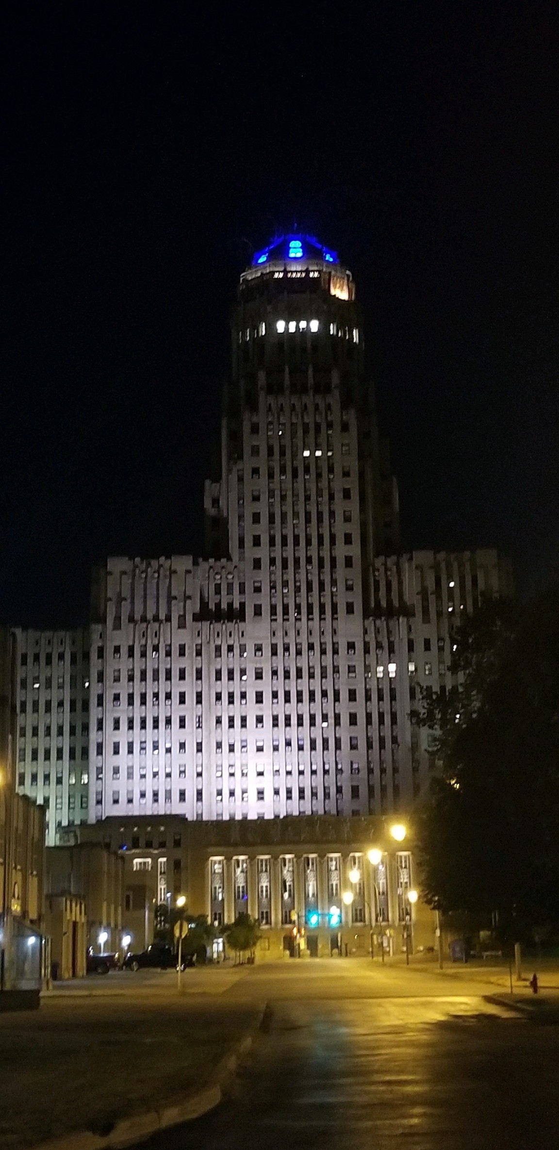 √ Buffalo City Hall, lit through the Buffalo Landmark Illumination Team initiative, and photographed by Kevin Horrigan and DeWan Stroud.