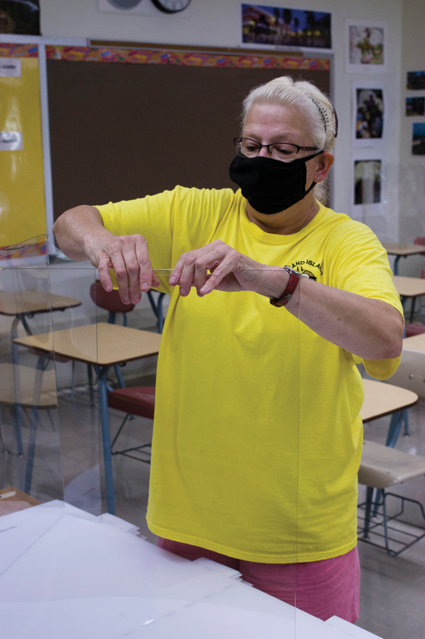 This week, the district received personal protective equipment, or PPE, for infection control and set to work affixing it to desks in classrooms.