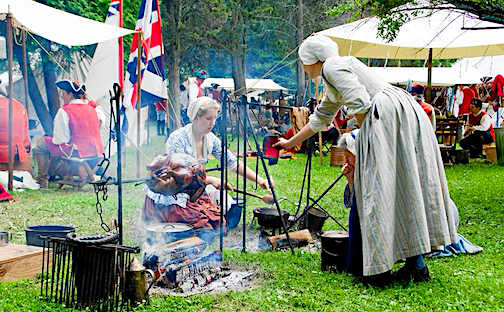 •Period cooking: At harvest time, it is appropriate to explore foodways of the past. Cooks will be preparing recipes from the 18th century or earlier. Learn about soldiers’ rations and how they were prepared. What did officers vs. enlisted soldiers eat? What was involved in preparing an 18th century meal? How did the soldiers augments their diets by hunting, fishing and gardening?