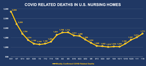 “Our worst fears have come true, as COVID runs rampant among the general population, and long-term-care facilities are powerless to fully prevent it from entering due to its asymptomatic and pre-symptomatic spread,” stated Mark Parkinson, president and CEO of AHCA/NCAL. “Our health care heroes are doing everything they can to prevent it from spreading further, but this level of COVID nationwide puts serious strain on our workforce, supplies and testing capacity. If everybody would wear a mask and social distance to reduce the level of COVID in the community, we know we would dramatically reduce these rates in long-term-care facilities.”
