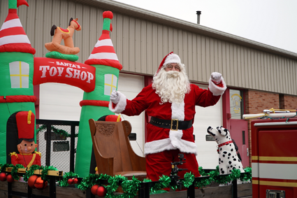 Families with little ones lined the streets, hoping to catch a glimpse of the man in red as he rode in a “Santa’s Toy Shop” trailer behind a YVFC rescue vehicle.