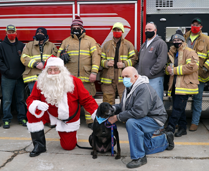 Also shown with Santa is Gunner, a 7-year-old hound dog who has been residing at the Niagara County SPCA’s no-kill shelter. The YVFC is sponsoring Gunner’s kennel and has put out the challenge to other Niagara County volunteer fire companies to join in the campaign. (Photos by Kevin and Dawn Cobello, K&D Action Photo and Aerial Imaging).