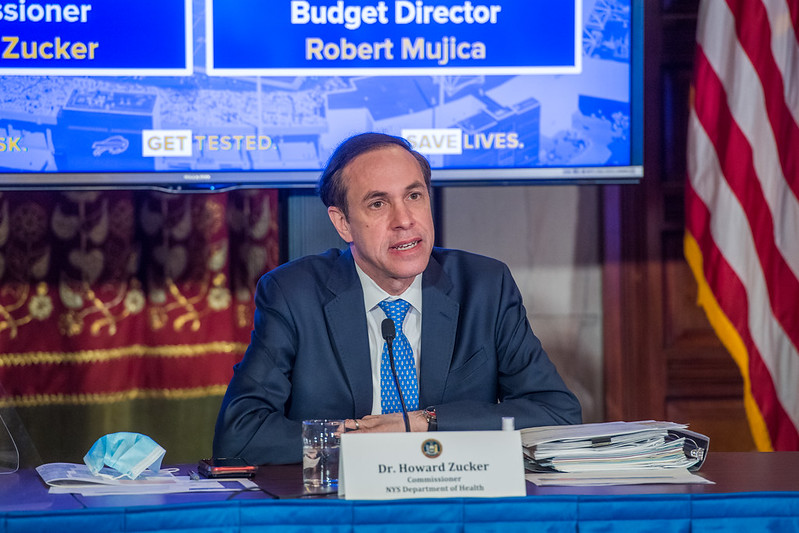 New York State Health Commissioner Dr. Howard Zucker discusses the Buffalo Bills plan. (Photo by Darren McGee/Office of Gov. Andrew M. Cuomo)