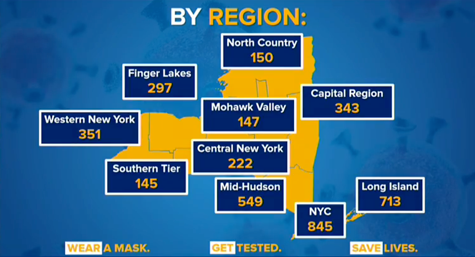 Number of New York vaccine distribution centers, by region. (Image courtesy of the Office of Gov. Andrew M. Cuomo)