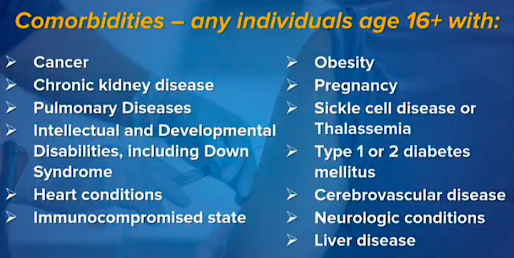 The full list of comorbidities and underlying conditions is available below. The list is subject to change as additional scientific evidence is published and as New York state obtains and analyzes additional state-specific data.