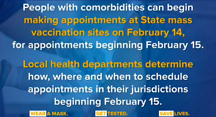Cuomo: New Yorkers with comorbidities & underlying conditions can make appointments at state-run mass vaccination sites beginning Feb. 14