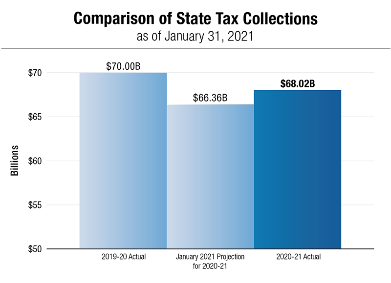 √ Personal income tax receipts in January were nearly $9.5 billion (6.2%) above January 2020, primarily due to strong estimated payment collections.