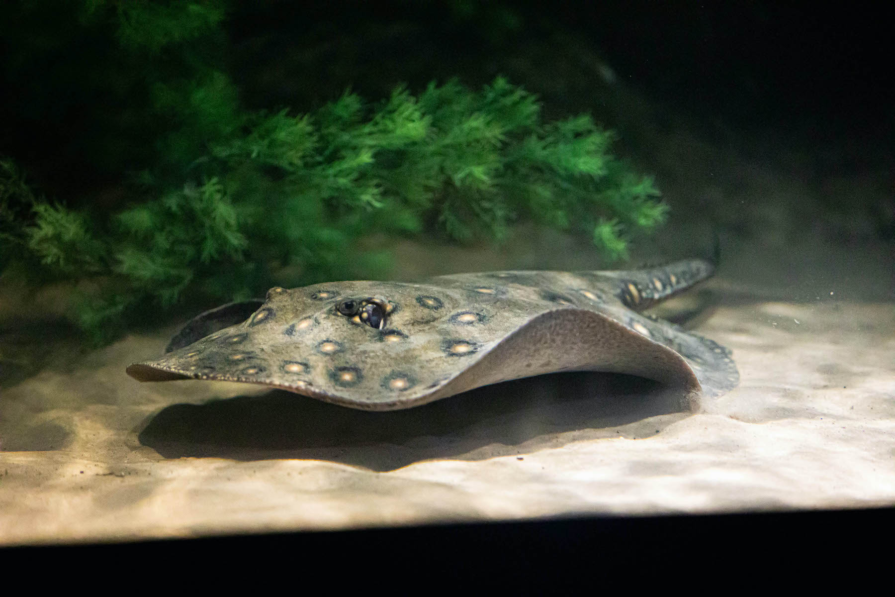 The star of the “Dangerous Beauties” exhibit is a rare Asian arowana that was confiscated at the U.S.-Canada border in Western New York. Asian arowanas are critically endangered fish, and it is illegal to import them into the country. The ornamental-looking fish are recognized by their vibrant color and large, metallic scales. The fish are particularly revered in Asian culture, because they symbolize luck and prosperity, which makes them highly sought-after and valuable. The arowana shares the exhibit with an ocellete river stingray, another animal whose species suffers from the ornamental fish trade.
