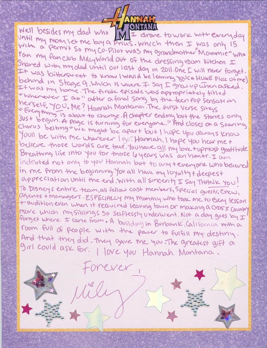 Miley’s letter to Hannah that was posted to her Instagram, @MileyCyrus, HERE; find a response from Hannah on her personal Instagram page, @HannahMontana, HERE.