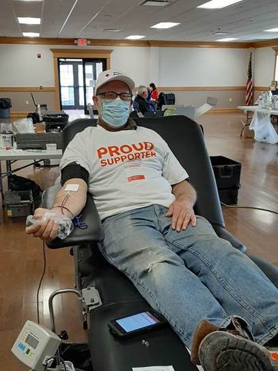 David Woodley of Lewiston just donated his 25th gallon of blood with The American Red Cross on Monday morning at Lewiston Fire Co. No. 1.