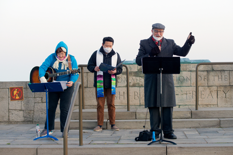 Socially distanced crowds and families lined the green grass, as the sun rose over the curtain wall at the historic site. (Photos by Wayne Peters)