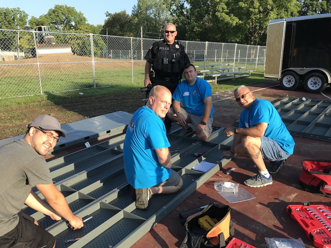 “Construction workers for a day” included members of the Board of Trustees, Village of Lewiston Recreation Department, Lewiston Police Department, Niagara County Sheriff’s Office and M&T Bank, plus local residents. Gallo Restaurants provided food for the dedicated crew.