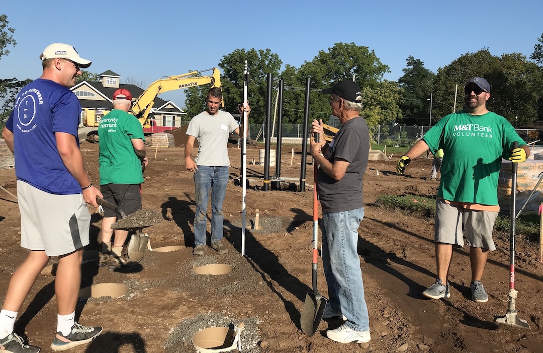 Village of Lewiston Mayor Anne Welch reports volunteers arrived bright and early Friday morning to begin work on the new inclusive playground located in Marilyn Toohey Park behind the Red Brick Municipal Building.