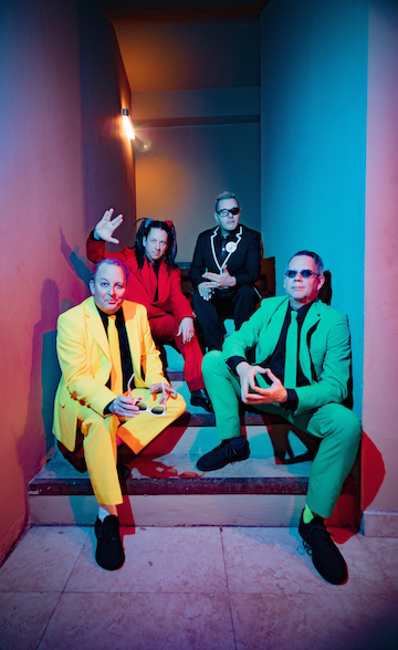 Information Society: From left: James Cassidy, Kurt Larson, Zeke "Falcotronik" Prebluda and Paul Robb. (Photo by Jonathan Shelgosh. Shot in the Dominican Republic in November 2019. Image courtesy of Reybee Inc.)