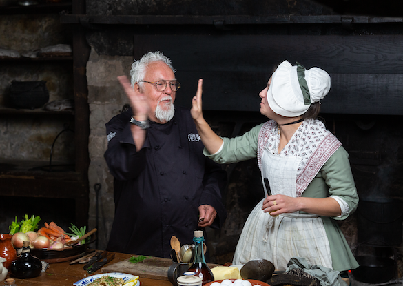 While at Old Fort Niagara, Staib and Old Fort Niagara’s interpretive specialist, Hanae Weber, prepared several period dishes in the boulangerie of the 1726 French Castle. The episode is expected to air in the spring of 2022.