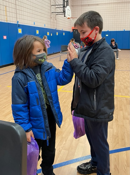 Brothers Wolfgang, 11, and Phoenix, 7, give each other a high-five after receiving their first dose of the Pfizer BioNTech COVID-19 vaccine shot during a clinic held Saturday at Harry F. Abate Elementary School in Niagara Falls. Saturday’s clinic was hosted by the Niagara Falls City School District with Memorial on hand to distribute vaccine shots to both adults and children aged 5-11.